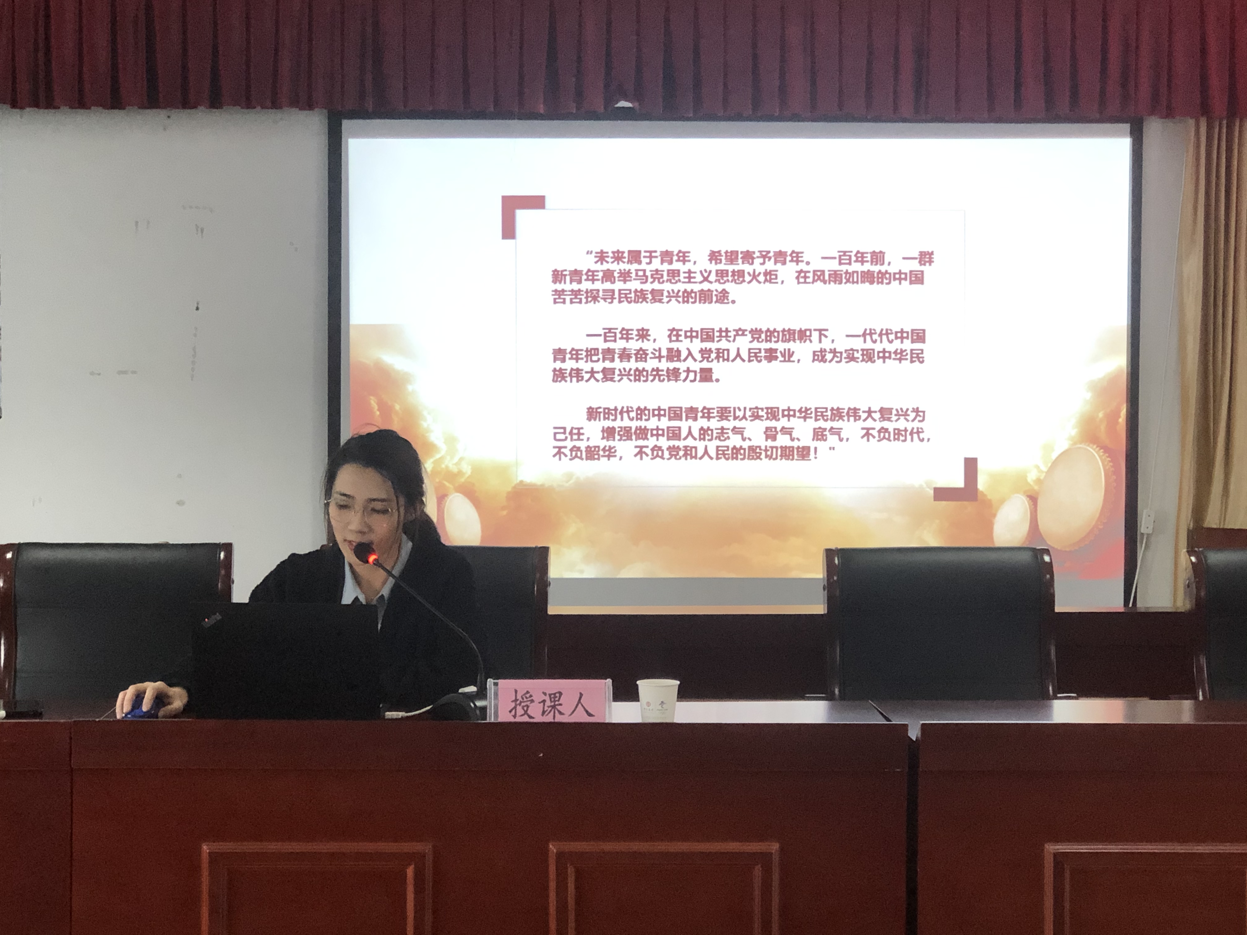本次宣講以“百年恰是風(fēng)華正茂”為主題,圍繞習(xí)近平總書記在慶祝中國(guó)共產(chǎn)黨成立100周年大會(huì)上,對(duì)青年一代的充分肯定、殷切勉勵(lì)、深情寄語(yǔ),從“不負(fù)時(shí)代,初心不改擔(dān)使命;不負(fù)韶華,心有所信方行遠(yuǎn);不負(fù)黨和人民的殷切期望,奮斗不止譜新篇”三個(gè)方面進(jìn)行深刻闡述。宣講會(huì)上,王迪通過視頻追尋革命先輩的光輝足跡。百年崢嶸歲月,眾多先輩不求顯達(dá)于世、不求暫得于己,不惜為了理想信念拋頭顱、灑熱血,用青春和生命書寫史詩(shī)。革命先輩們的事跡激勵(lì)我們,生逢盛世,作為新時(shí)代青年一代,要勇?lián)鷼v史使命,堅(jiān)定前進(jìn)信心,努力成為堪當(dāng)民族復(fù)興重任的時(shí)代新人!